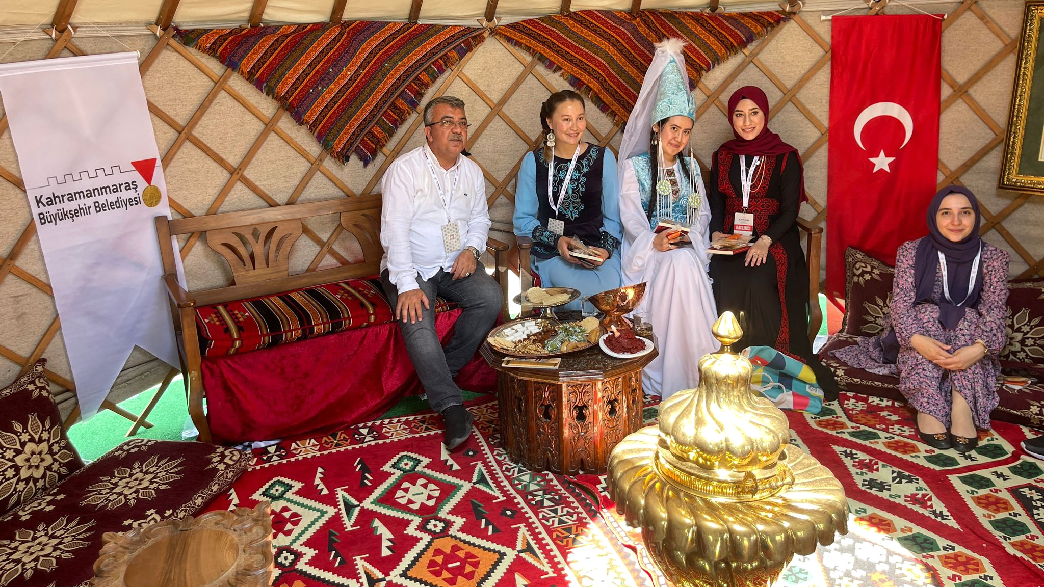 Kahramanmaraş Büyükşehir Belediyesi, Dünya Etnospor Konfederasyonu tarafından organize edilen 5. Etnospor Kültür Festivali’nde yerini aldı. 9 – 12 Haziran tarihleri arasında Atatürk Havalimanı’nda gerçekleştirilen festivalde katılımcılar yöresel lezzetlerini, kültürünü ve el sanatlarını misafirlere tanıtma imkânı buluyor. Büyükşehir Belediyesi de Kahramanmaraş’ı hem yurt içinden hem de yurt dışından gelen misafirlere tanıtmak ve şehrin değerlerini göstermek için festivalde Kültür Çadırı kurdu. Kahramanmaraş’ın yöresel lezzetlerinin, geleneksel el sanatlarının, gelenek ve göreneklerini yansıtan eserlerin yer aldığı çadır, yerli ve yabancı katılımcıların ilgi odağı oldu. Misafirlere ikram edilen Maraş Dondurması yoğun ilgi gördü. Kahramanmaraşlı güreşçiler de festivalde sergiledikleri gösterilerle katılımcılardan alkış aldı. Festivalde kurulan kültür çadırını ziyaret edenler arasında Dünya Etnospor Konfederasyonu Başkanı Bilal Erdoğan ve Balıkesir Büyükşehir Belediye Başkanı Yücel Yılmaz da yer aldı.
