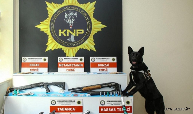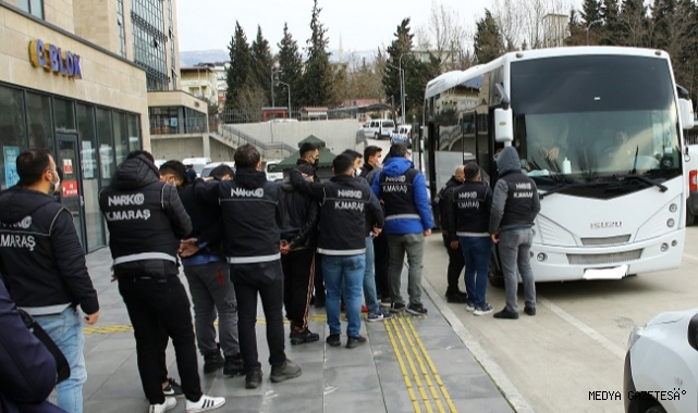 Alınan bilgilere göre, İl Emniyet Müdürlüğü Narkotik Suçlarla Mücadele Şube Müdürlüğümüz görevlilerince Cumhuriyet Başsavcılığı koordinesinde başlatıla, organize suç örgütü faaliyeti çerçevesinde uyuşturucu madde ticareti yapan şüphelilere yönelik Kahramanmaraş merkezli, Adana ve Gaziantep’te önceden belirlenen 14 adrese Özel Harekat destekli eş zamanlı şafak operasyonu düzenledi. Narkotik Suçlarla Mücadele Şube Müdürlüğü görevlilerince, organize suç örgütü faaliyeti içerisinde uyuşturucu madde ticareti yaptığı tespit edilen örgüt lideri, yönetici ve üyelerinin yakalanması için özel hareket timlerinin de destek verdiği 73 ekip 180 personelin görev aldığı şafak operasyonunda suç örgütü lideri ile birlikte, yöneticiler ve örgüt üyelerinin tamamı yakalandı. Adreslerdeki aramalarda narkotik madde arama köpeğinden de faydalanılarak 1 kilogram 634 gram metamfetamin, 3 adet hassas terazi, 6 adet tabanca, 5 adet av tüfeği ile çeşitli miktarlarda farklı uyuşturucu maddeler ele geçirildi.