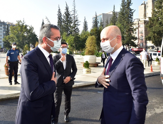 Ulaştırma ve Altyapı Bakanı Adil Karaismailoğlu, Kahramanmaraş’ta bulunmaktan duyduğu memnuniyeti belirterek, “Bugün Kahramanlığın destanını yazan şehrimiz Kahramanmaraş’tayız. Yatırımlarımızla ilgili değerlendirmeyi Ulaşım Çalıştayımızda gerçekleştireceğiz. Hedefimiz Kahramanmaraşımızı kusursuz bir ulaşım ağıyla donatıp örnek bir şehir haline getirmek. Tek derdimiz halkımıza kaliteli hizmet sağlayabilmek. Büyükşehir Belediye Başkanımıza kolaylıklar diliyorum. Tüm Kahramanmaraşlılara sevgi ve saygılarımı sunuyorum” ifadelerini kullandı. Gerçekleştirilen görüşmenin ardından Büyükşehir Belediye Başkanı Hayrettin Güngör, Ulaştırma ve Altyapı Bakanı Adil Karaismailoğlu’na İstiklal Madalyası figürlü tablo hediye etti.