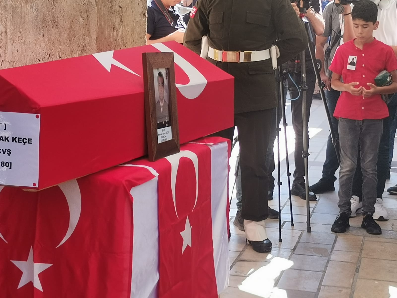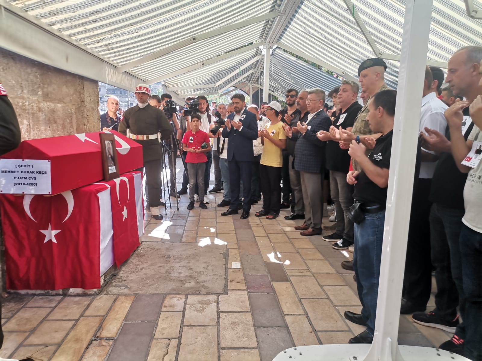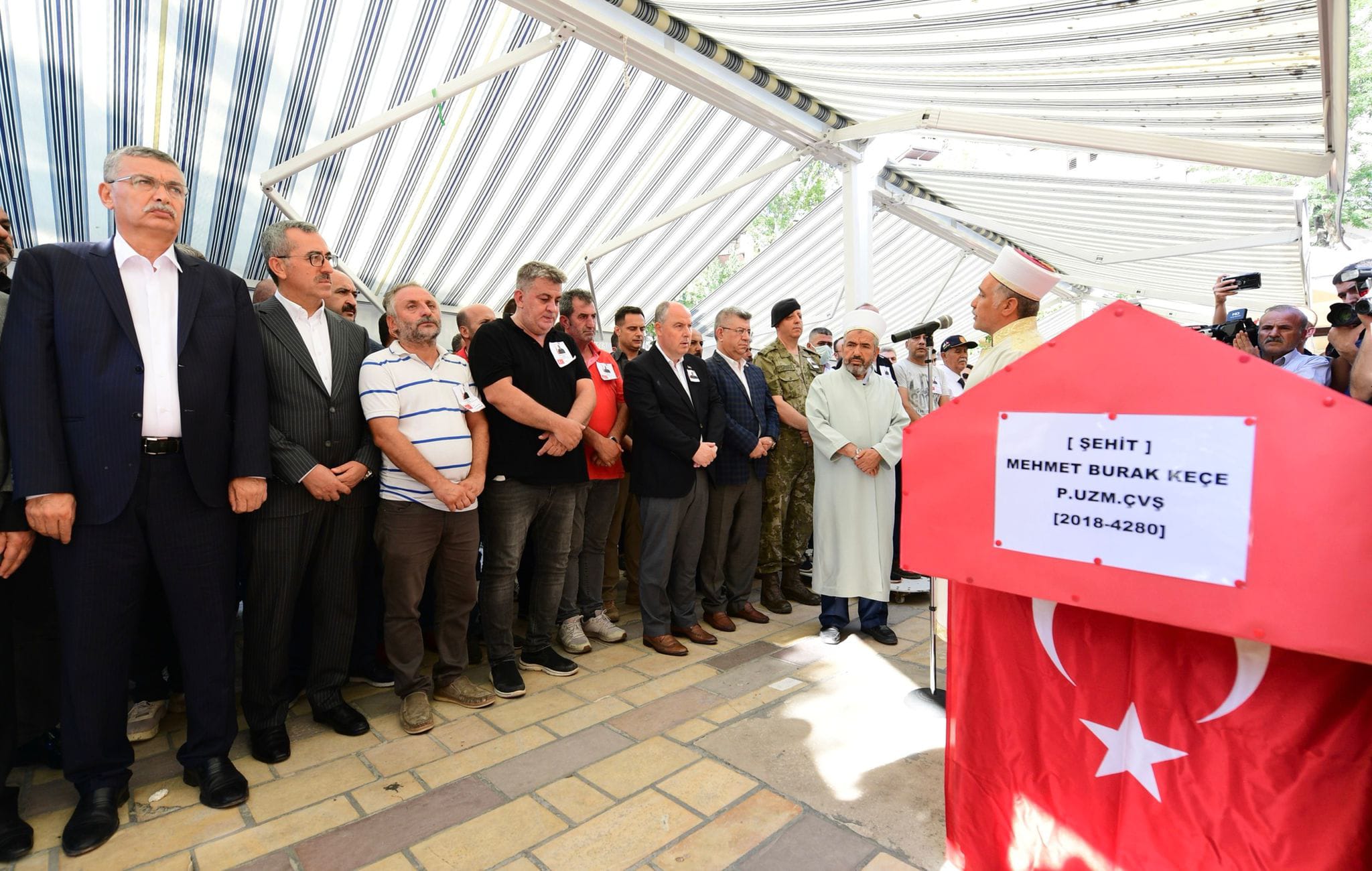 Irak'ın Kuzeyi'nde terör örgütü PKK'ya yönelik sürdürülen Pençe-Kilit Harekatı'nda arı sokması sonucu şehit olan Piyade Uzman Çavuş Mehmet Burak Keçe'nin cenazesi için tören düzenlendi.