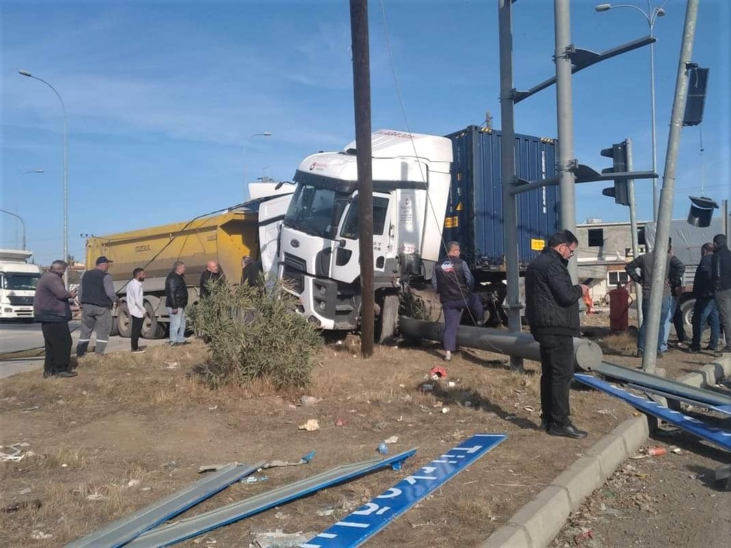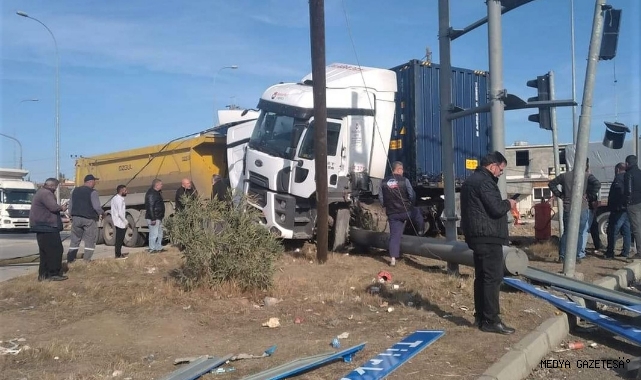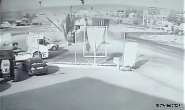 Kahramanmaraş’ta kavşakta dikkatsizlik sonucu 2 tırın çarpıştığı kaza, bir işyerinin güvenlik kamerasınca görüntülendi.