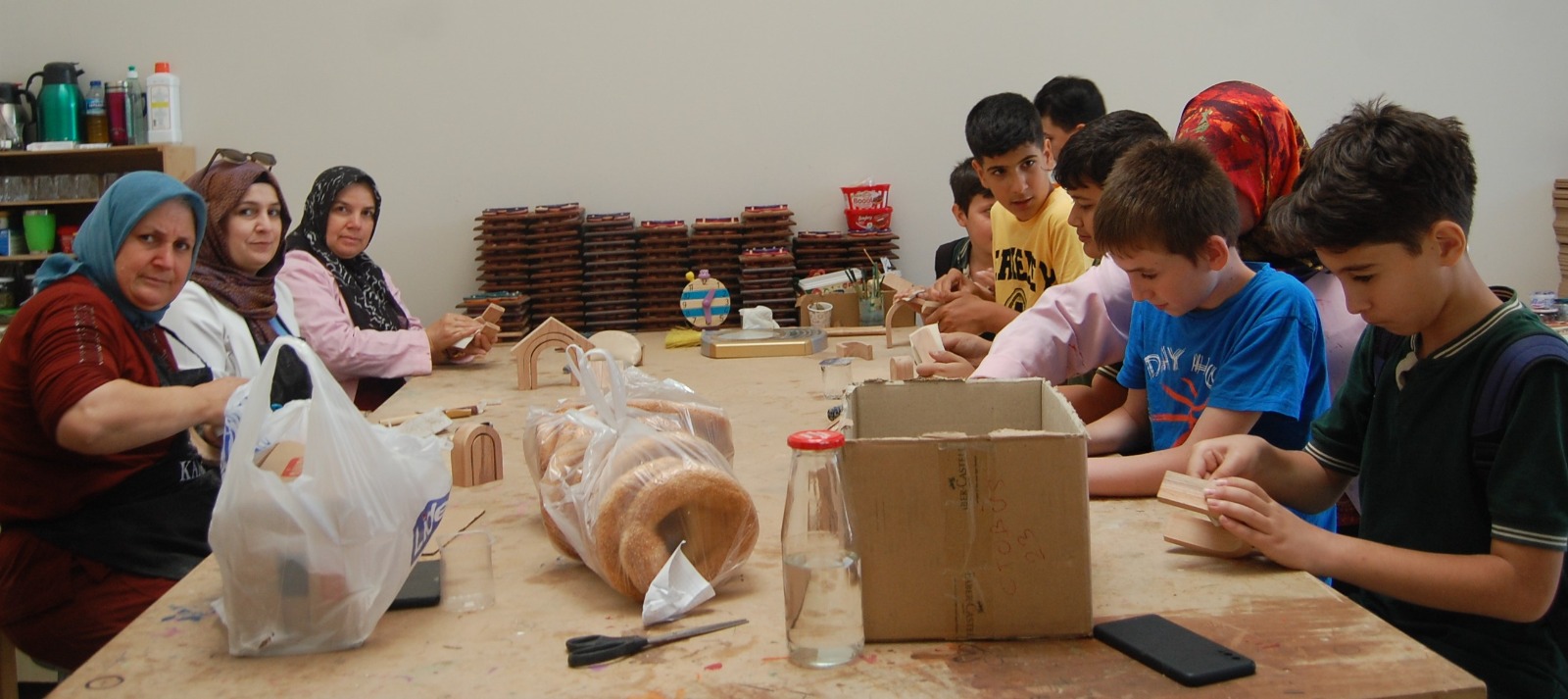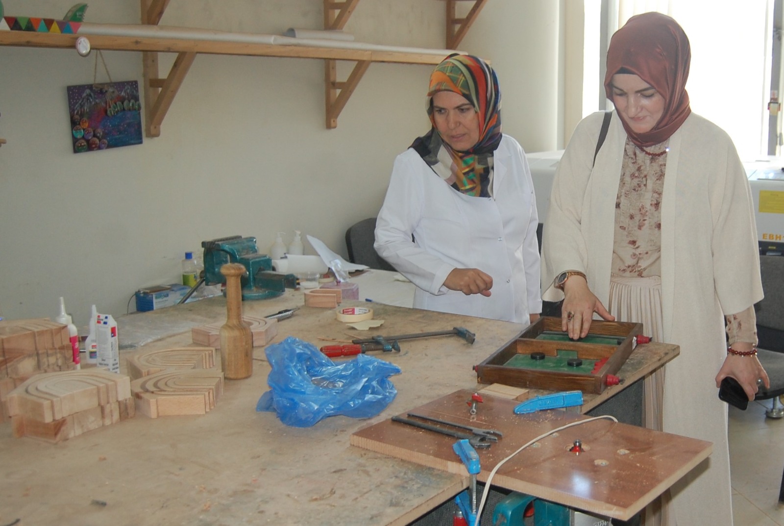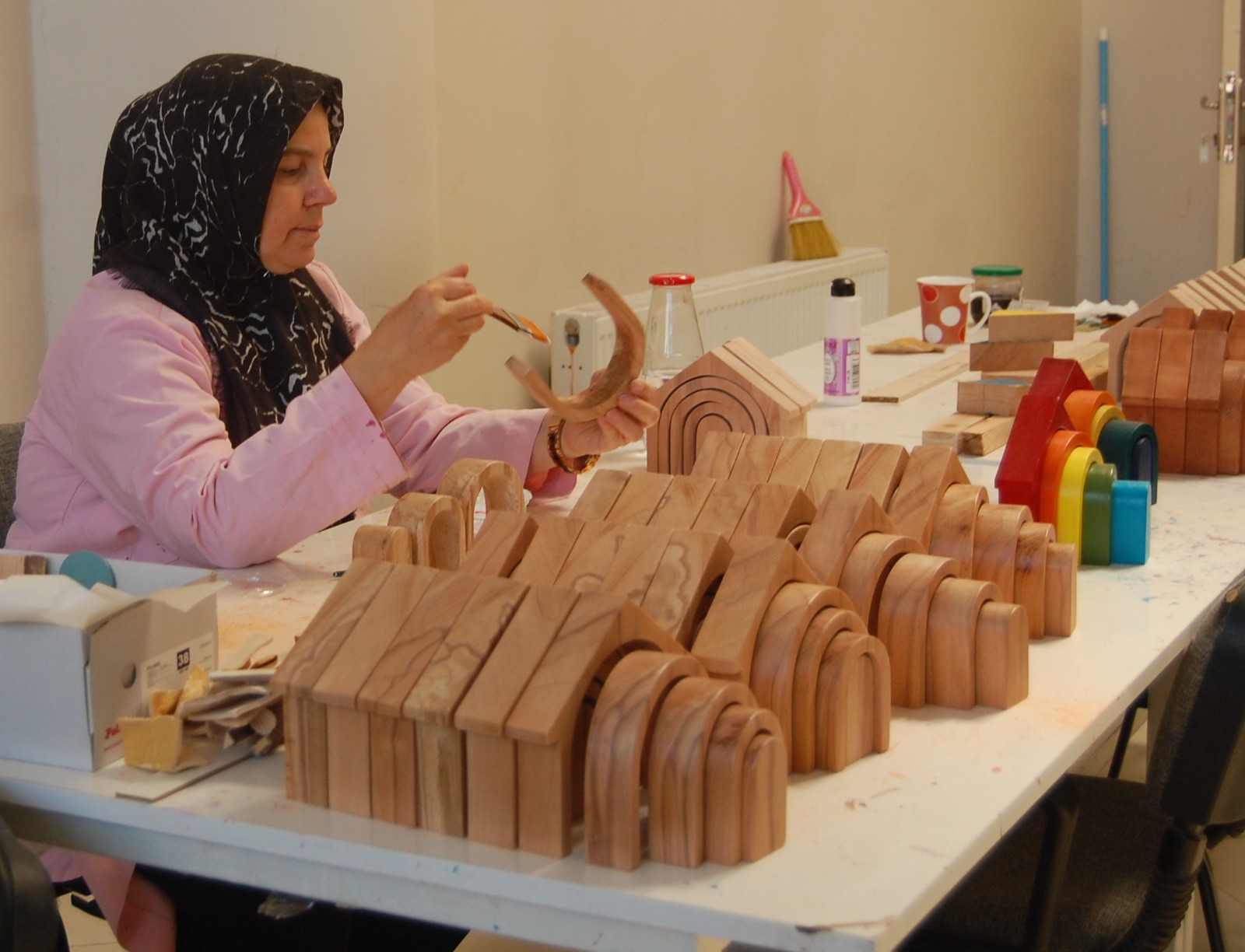 Kahramanmaraş Kültür Park’ta faaliyette gösteren ahşap oyuncak atölyesinde çalışan dezavantajlı kadınlar, hem üretim yapıyor hem aile ekonomisine katkı sağlıyor.