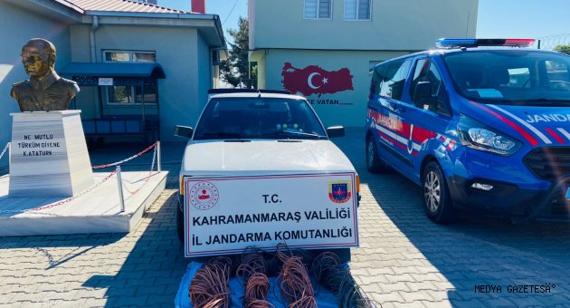 Kahramanmaraş’ta jandarma ekipleri, bakı kablo çalan 2 kişiyi suçüstü yakaladı.