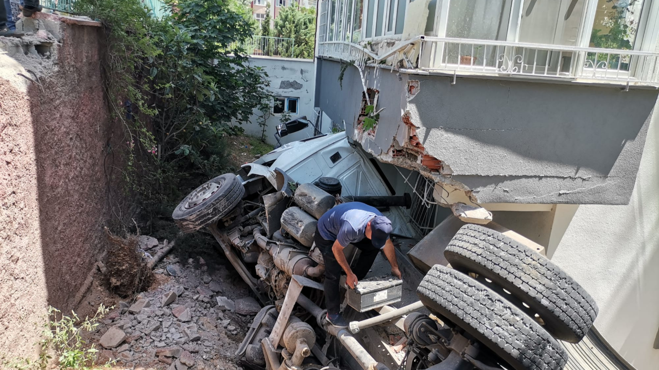 Kahramanmaraş’ta freni patlayan su tankeri, önce park halindeki otomobile sonra bir apartmana çarparak ancak durabildi. Kaza anı güvenlik kamerasınca saniye saniye görüntülendi.