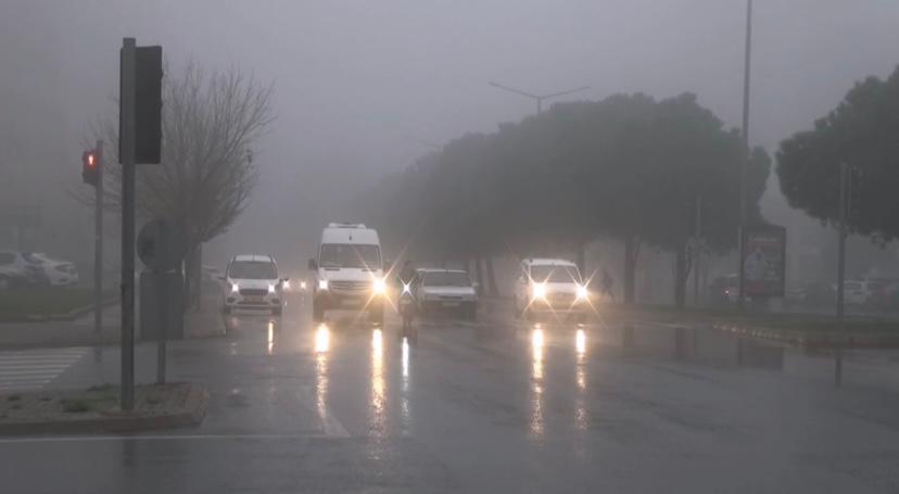 Kahramanmaraş’ta etkili olan yağış sonrasında gece saatlerinde oluşan sis, görüş mesafesini yaklaşık 20 metreye kadar düşürdü.