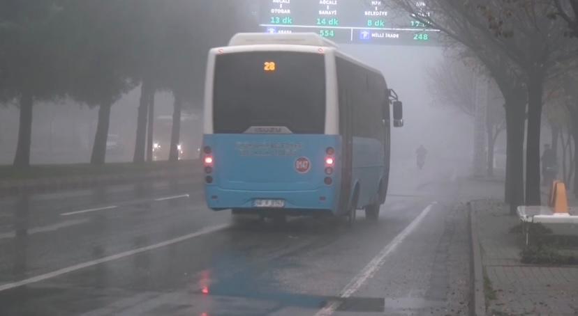 Kent merkezinde yüksek kesimlerde etkili olan sis nedeniyle sürçüler trafikte ilerlemekte güçlük çekti.