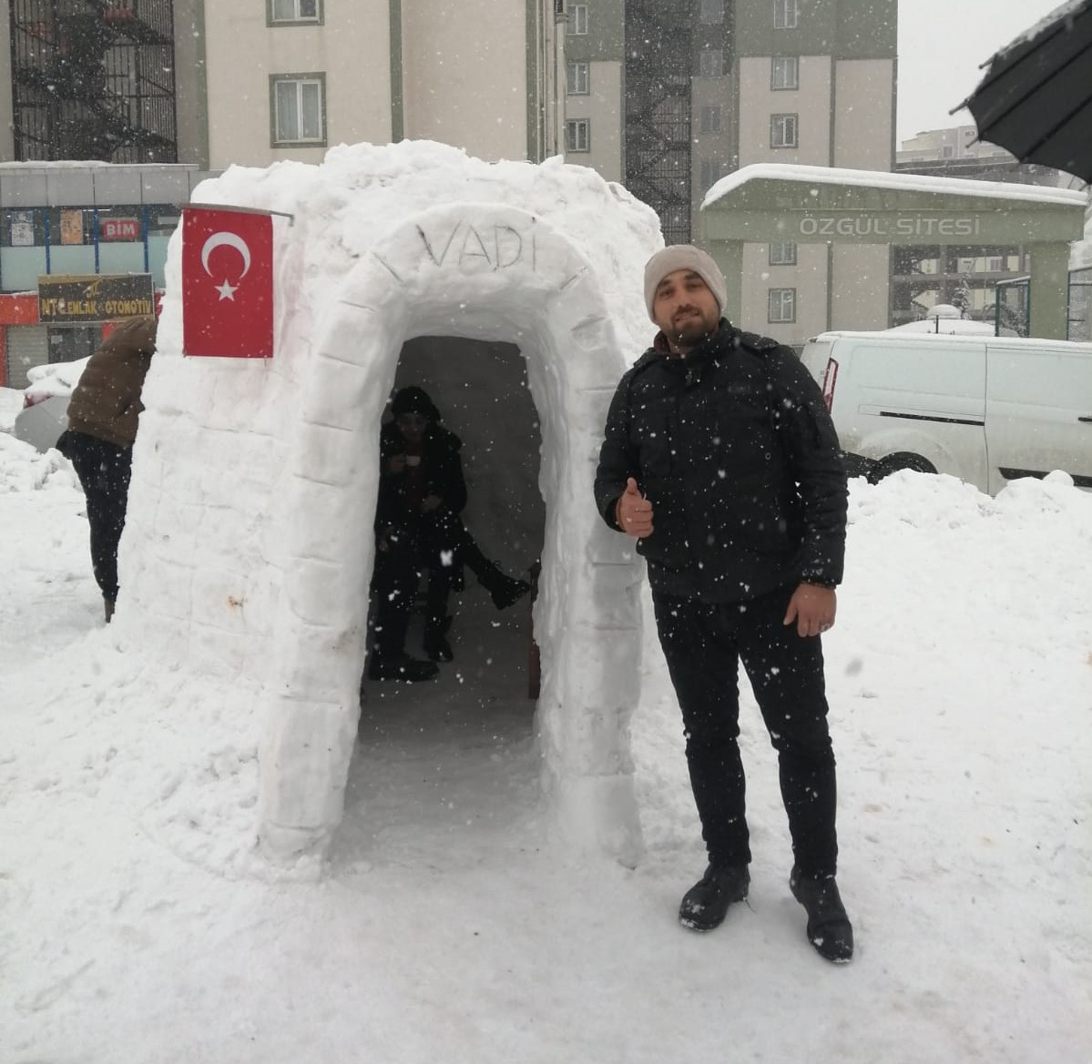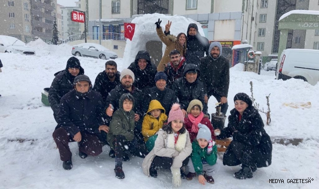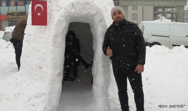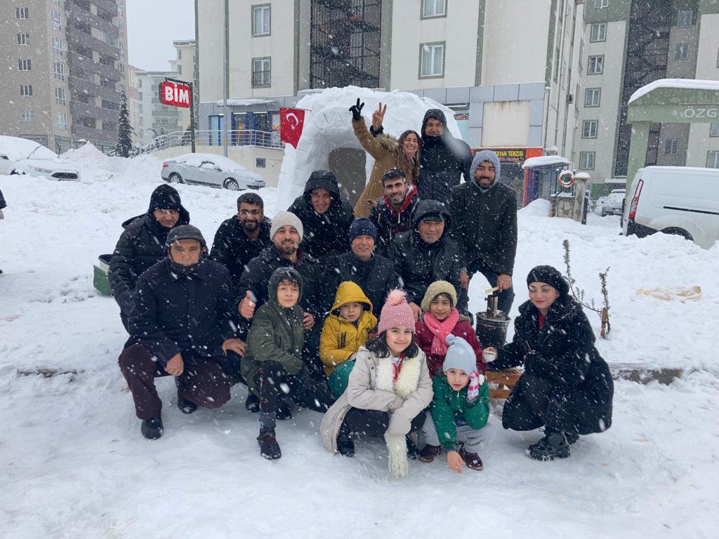 Yine Onikişubat İlçesi Vadi Mahallesi’nde kar yağışını fırsat bilen bir gurup genç, kardan adam yerine inşa ettikleri Eskimo evleriyle gönülleriyle eğlendiler.