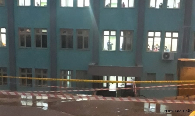 Kahramanmaraş’ta sağanak yağış sonrası bir okulun istinat duvarı yıkıldı.