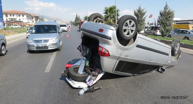 İki otomobilin karıştığı trafik kazasından bir dakika sonra karşı yönden şeritten gelen sürücü yönetimindeki 02 FR 533 plakalı otomobiliyle orta refüje çarpması sonucu takla attı.