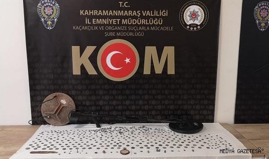 Edinilen bilgiye göre, KOM Şube Müdürlüğü görevlileri tarafından yapılan çalışmalar neticesinde H.N’nin tarihi eser satacağı yönünde bilgiye ulaşmasıyla harekete geçti. Şüphelinin iş yerinde yapılan aramada tarihi eser olduğu değerlendirilen Roma, Helenistik dönemlerine ait 474 adet sikke, 23 adet tarihi eser olarak değerlendirilen obje ve bir adet detektör bulundu.