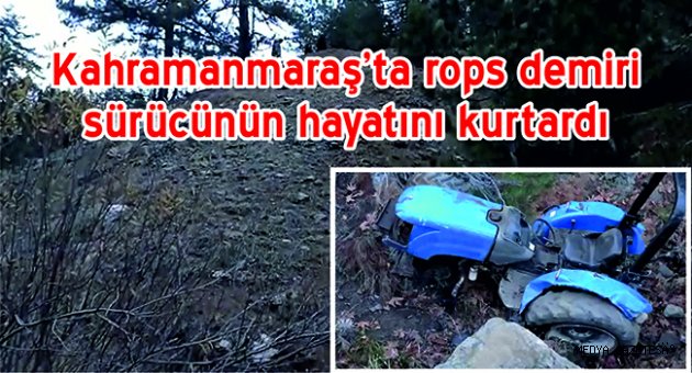 Edinilen bilgiye göre, Onikişubat İlçesi Sariguzel Mahallesi Yıldırım Yücesi mevkiinde Bayram Elmas (41) yönetimindeki traktörüyle seyir halinde iken direksiyon hakimiyetini kaybederek yoldan çıktı. Yoldan çıkan traktör yaklaşık 50 metrelik uçuruma yuvarlandı. Sürücü kazada rops demiri sayesinde hafif yaralı atlattı. İhbar üzerine olay yerine gelen sağlık ekiplerince hastaneye kaldırılan sürücünün sağlık durumunun iyi olduğu öğrenilirken, jandarma ekipleri traktörlerde rops demirinin önemine dikkat çekti.