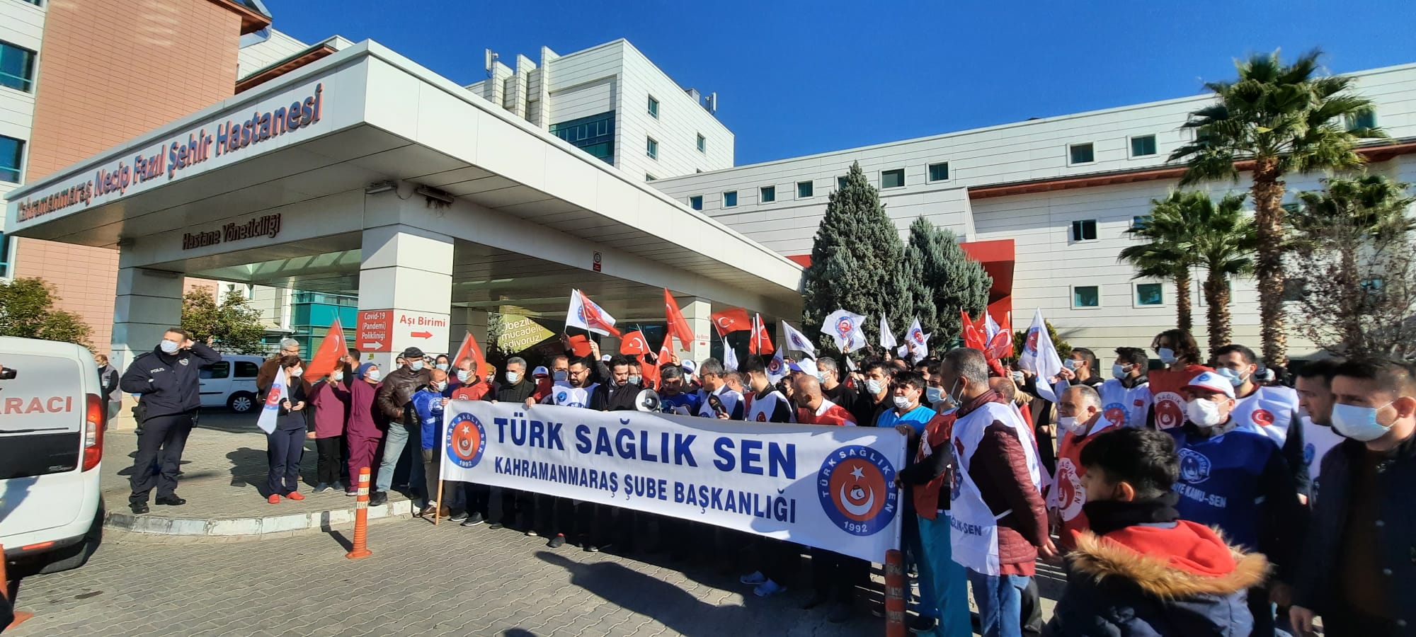Sağlık çalışanları tarafından Türkiye genelinde uygulanan işe 1 saat geç başlama eylemi, Kahramanmaraş'ta KSÜ Tıp Fakültesi ve Necip Fazıl Şehir Hastanesi'nde gerçekleşti. Türk Sağlık-Sen Kahramanmaraş Şube Başkanı Mehmet Özer, açıklamasında şu ifadelere yer verdi: