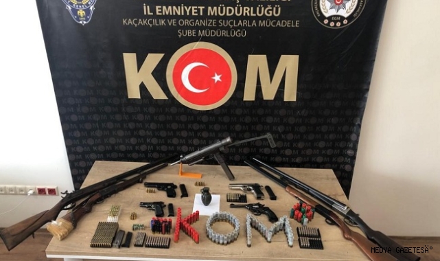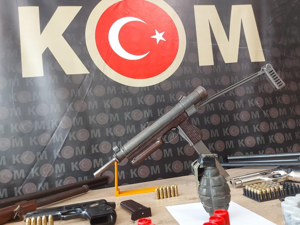 Gözaltına alınan şüphelilerin ikametlerinde, işyerinde ve araçlarında yapılan aramalarda 1 adet patlamaya hazır el bombası, 1 adet hafif makinalı tüfek, 3 adet ruhsatsız tabanca, 4 adet ruhsatsız av tüfeği, 1 adet kurusıkı tabanca ile çok sayıda tabanca mermisi ele geçirildi.
