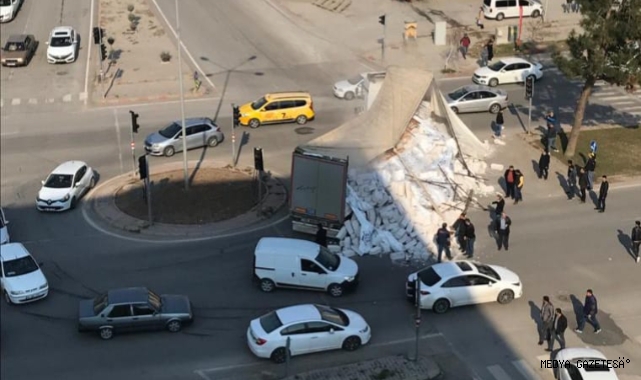 Kahramanmaraş’ta seyir halinde iken taşıdığı yüke dayanamayan tırın dorsesinde yer alan malzemeler yola saçıldı.