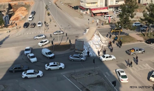 Edinilen bilgiye göre, Onikişubat İlçesi Cumhuriyet Mahallesi Prof. Dr. Necmettin Erbakan Bulvarı üzerinde sürücüsünün ismi öğrenilemeyen tırla seyir halinde iken dorsenin içinde bulunan yükü kavşakta yere döküldü. Yola dökülen malzemeler nedeniyle trafik kontrollü sağlanırken, olayda herhangi bir yaralanmanın olmadığı öğrenildi.