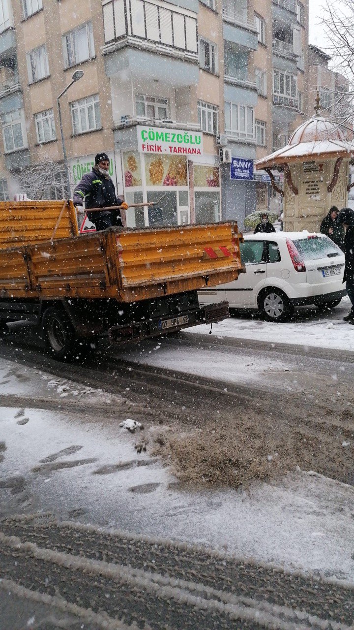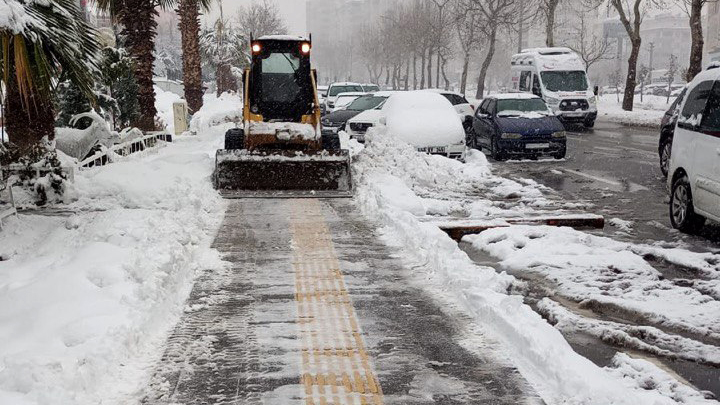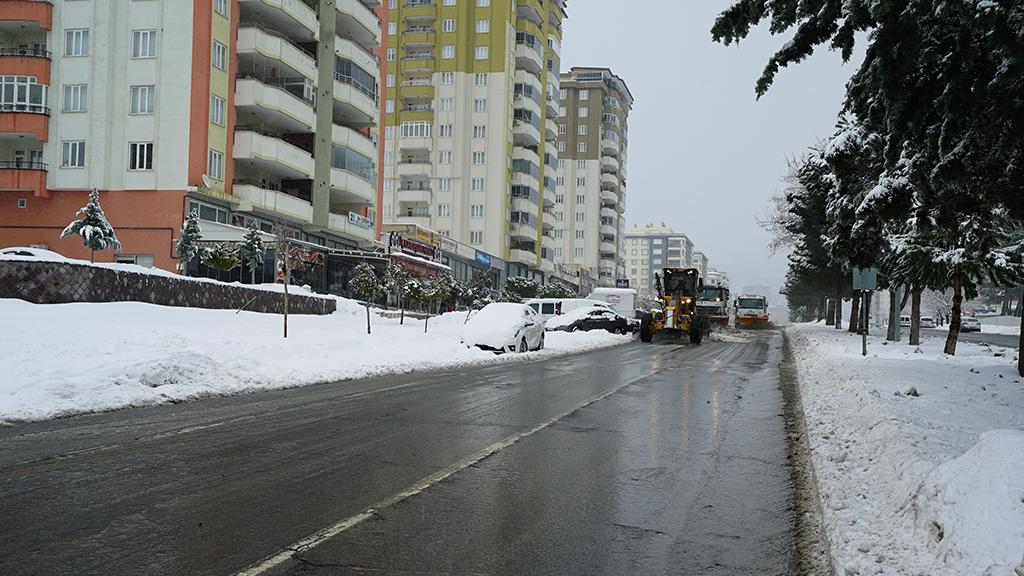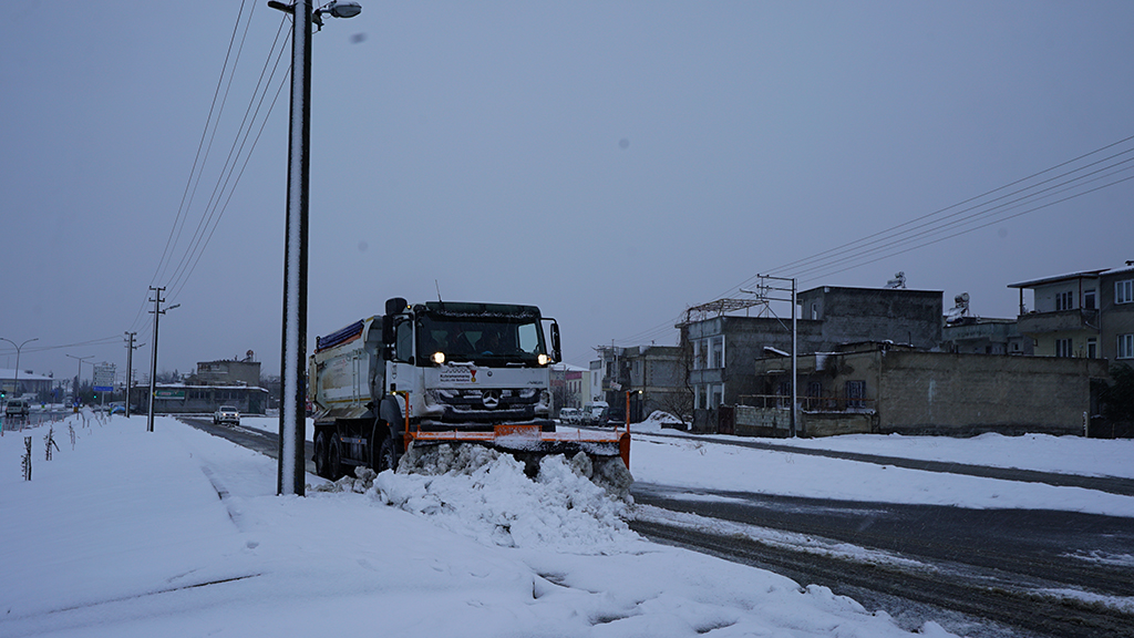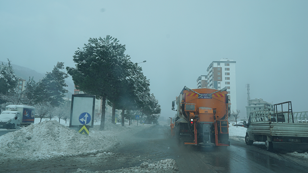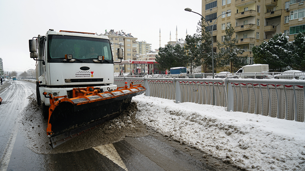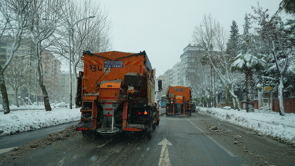 Kahramanmaraş Büyükşehir Belediyesi, şehir genelinde etkisini gösteren karla mücadele çalışmalarını aralıksız sürdürüyor. 210 araç ve 400’ün üzerinde personelle çalışmalarına devam eden ekipler bir yandan ana arterleri trafiğe açık tutarken bir yandan da buzlanmaya karşı önlem alıyor. Onikişubat ve Dulkadiroğlu ilçe merkezinde 32 noktada konumlanan ekipler onlarca greyder, kar bıçaklı tuzlama araçları, açık tuz kamyonları ve kazıcı yükleyicilerle ana arterlere müdahale etti. Zaman zaman tipiye dönüşen kar yağışına rağmen şehir merkezindeki ana arterler açık tutuldu.
