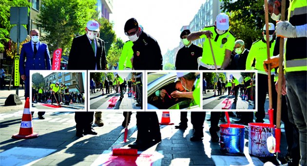 Yaya önceliğine dikkat çekilen uygulamada, geçitlerdeki beyaz noktaların bazı yerleri kırmızıya boyandı. İlk kırmızı çizgiyi Kahramanmaraş Valisi Ömer Faruk Coşkun çekti. Daha sonra yaya geçitlerinden geçenlere kırmızı düdük, şapka, broşür ve maske dağıtıldı.