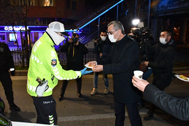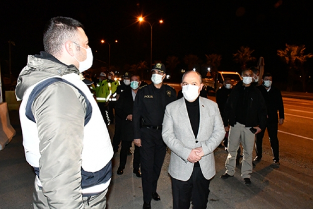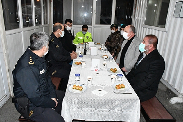 Yeni tip koronavirüs (Kovid-19) salgınıyla mücadele kapsamında yurt genelinde uygulanan sokağa çıkma kısıtlaması nedeniyle Kahramanmaraş'ta yıl başında cadde ve sokaklar boş kaldı.İl Emniyet Müdürü Salim Cebeloğlu'da (sağda) uygulama noktalarını ziyaret etti.Kahramanmaraş valisi kontrol noktalarındaki güvenlik güçlerinin yeni yılını kutladı.Kahramanmaraş Valisi Ömer Faruk Coşkun, yeni yıl dolaysıyla görevlerini başındaki güvenlik güçlerini ziyaret etti. Coşkun, ayrıca denetim noktasında, seyahat eden yolcularla sohbet etti.