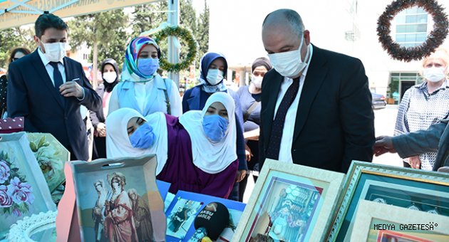 Kahramanmaraş'ta "Hayat Boyu Öğrenme Haftası" dolayısıyla hazırlanan sergide siyam ikizleri Ayşe ve Sema Tanrıkulu'nun hazırladıkları el emeği göz nuru ürünler ilgi görüyor.