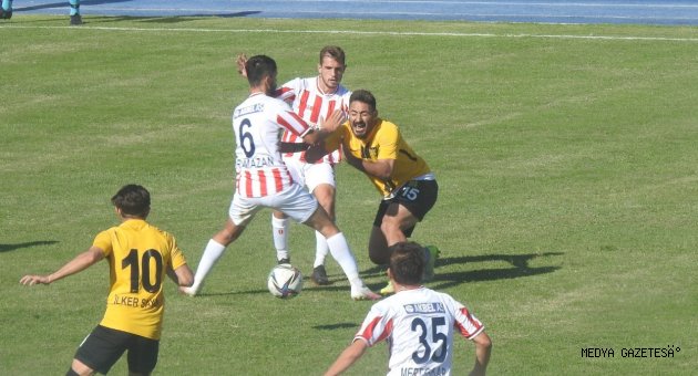 Dk11 Kahramanmaraşspor sol kanattan Hamit ile atağa çıktı, Hamit şık çalımlarla iki rakibini geçti pasını Yakup’a verdi, Yakup topun gelişine sert vurdu top defanstan döndü.