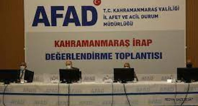 Kahramanmaraş'ta, Afet ve Acil Durum Yönetimi Başkanlığı (AFAD) tarafından hazırlanan İl Afet Risk Azaltma Planı (İRAP) ve Koordinasyon Kurulu Eylem Değerlendirme Toplantısı yapıldı.