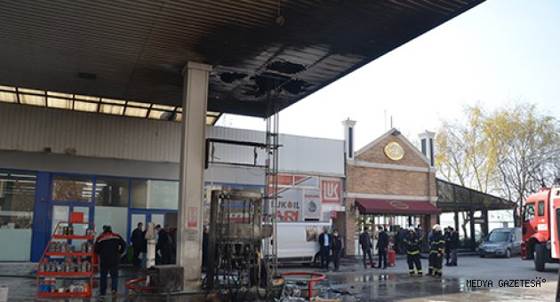 İtfaiye ekiplerinin çalışmasıyla söndürülen yangında akaryakıt pompaları kullanılamaz hale geldi.