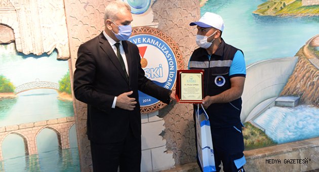 Kahramanmaraş Su ve Kanalizasyon İdaresi (KASKİ) Genel Müdürü Ahmet Kavak, personelleri Müjdat Çimen'i davet ederek, sergilediği örnek davranışından dolayı kendisine teşekkür etti.Kavak, 100 lira para çekmek için gittiği ATM'nin fazla verdiği 13 bin lira parayı polise teslim eden Çimen'i plaket ve özel hediye ile ödüllendirdi.Kavak gazetecilere yaptığı açıklamada, Çimen'in sergilediği davranışın kendilerini onurlandırdığını söyledi.Bu davranışın herkese örnek olması temennisinde bulunan Kavak, "Bu güzel davranışı duyunca mutlu oldum. Aylık aldığı ücretin birkaç katı olan parayı alma noktasında en ufak bir tereddüt yaşamadan harekete geçiyor. Hemen amiriyle irtibata geçiyor. Bu emaneti de teslim etmek için heyecanla beklediğini biliyoruz." dedi.Kavak, KASKİ'nin böyle bir çalışanı olmasından memnuniyet duyduklarını dile getirerek, bu güzel davranışın herkese örnek olmasını dilediklerini aktardı.Çimen de "Buraya başladığımda işimizin hizmet olduğunu anladım. Bu yaptığım hareketin de vatandaşımıza karşı hizmet olduğuna eminim." diye konuştu.KASKİ bünyesinde görev yapan Müjdat Çimen, dün Dulkadiroğlu ilçesinde bulunan özel bir bankanın ATM'sinden para çekmek istemiş, 100 lira para çekmek için gittiği ATM'nin 13 bin lira fazla para verdiğini görünce durumu amirlerine bildirmişti.Onikişubat Serintepe Şehit Celil Dağ Polis Merkezi'ne giden Çimen, burada tutanak karşılığında parayı teslim etmişti.