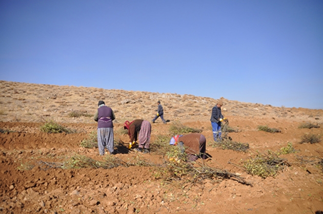 İlçeye bağlı Karagöz Mahallesi'nde çiftçilik yapan baba Mehmet ve oğlu Enes Şahin gelir elde edemediği için üretim yapmayı bıraktığı araziyi Isparta'dan temin ettikleri güllerle bahçeye dönüştürmek için çalışma başlattı.Bu kapsamda 20 dönümlük araziye gül fidelerini diken baba ve oğul, ürünlerinin hasadını yapmak için gün sayıyor.Çiftçi baba ve oğlunu ziyaret eden Afşin Belediye Başkanı Mehmet Fatih Güven, belediye olarak gül ve lavanta yetiştiren çiftçilere destek olacaklarını belirtti.İlçedeki kıraç toprakların tıbbi ve aromatik bitkilerle hayat bulmasını istediklerini belirten Güven, şunları kaydetti: "İlçemizdeki tarım arazilerinde kıraç olduğu ve gerekli verim sağlanamadığı için üretim yapılamıyor. Bizler özellikle bu kıraç topraklara talibiz. Ekilmeyen ve üretim dışı kalan toprakların aromatik bitkilerle hayat bulmasını istiyoruz. Çiftçilerimizin bu verimsiz toprakları ekmeleri ve emeklerinin karşılığını almaları için belediye olarak aromatik bitki üretimi konusunda örnek olmak için çalışmalar yapıyoruz. Alternatif ürünlerle yerel ekonominin canlanmasını istiyoruz. Gül de kozmetik ve ilaç sanayide çok önemli bir bitki."Baba Şahin de diktikleri güllerin hasadını yapmak için sabırsızlandıklarını ifade ederek, "İlçemizde böyle bir çalışma yapacağımızı başkanımıza ilettik ve kendisi bizlere destek olacağını belirtti. Güzel bir işe başladık. İnşallah ilkbaharla birlikte 20 dönümlük alana ektiğimiz gül fideleri yeşerecek ve gül vermeye başlayacak." ifadesini kullandı.Oğul Şahin ise boş kalan arazilerini gül bahçesine dönüştürerek değerlendirmek istediklerini belirterek, bu kapsamda gül diktiklerini anlattı.Daha önce ektikleri yem bitkisinden gelir elde edemediklerini ifade eden Şahin, oluşturdukları gül bahçesinden hatrı sayılır bir gelir elde etmeyi amaçladıklarını kaydetti.