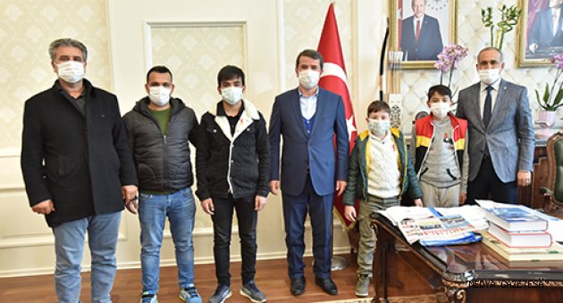 Adana'da düzenlenen Geleneksel Türk Okçuluğu Açık Hava Yarışması'na katılarak minik erkek A kategorisinde 1. Yavuz Berat Öztürk, minik erkek B kategorisinde 1. Yasin Kurt, gençler kategorisinde 2'nci Mehmet Olgun ile Türkoğlu Avasım Geleneksel Okçuluk Kulüp Başkanı Talip Polat Türkoğlu Belediye Başkanı Osman Okumuş 'u makamında ziyaret etti.