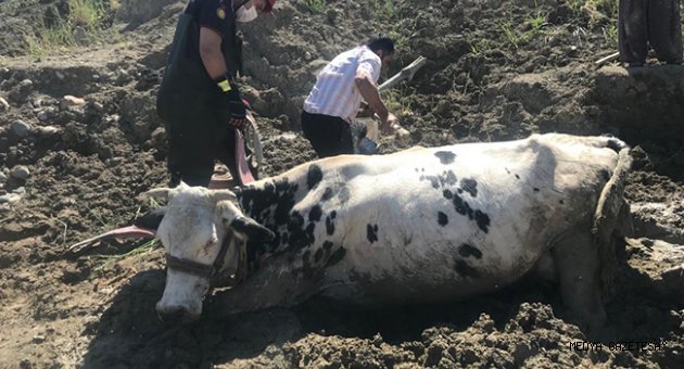 Kavlaklı Mahallesi'nde otlamak için arazideki sulak alana giren bir inek buradaki bataklığa saplandı.İneğin bataklıktan çıkaramayan sahibi, durumu belediye ekiplerine bildirerek yardım istedi.Olay yerine gelen Büyükşehir Belediyesi itfaiye ekipleri, iş makinesi yardımıyla bataklığın bir bölümünü temizleyip ineği saplandığı yerden çıkardı.İnek daha sonra sahibine teslim edildi.
