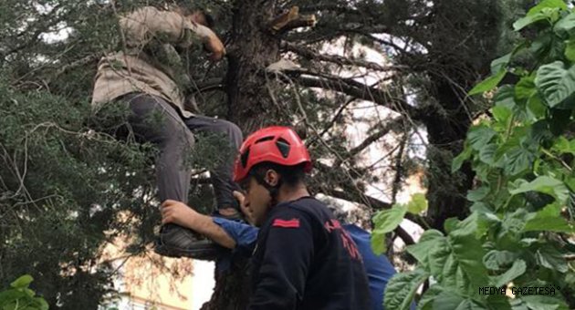 İlçeye bağlı Fatih Mahallesi'nde yaşayan Nizamettin Demirci (50), budamak için çıktığı ağaçta fenalaştı.Çevredekilerin yardımına rağmen ağaçtan inemeyen Demirci, olay yerine çağrılan Büyükşehir Belediyesi itfaiye ekiplerince yaklaşık yarım saatlik çalışmanın ardından bulunduğu yerden indirildi.İlk müdahalesi olay yerinde yapılan Demirci, sağlık ekiplerince Necip Fazıl Şehir Hastanesine kaldırıldı.