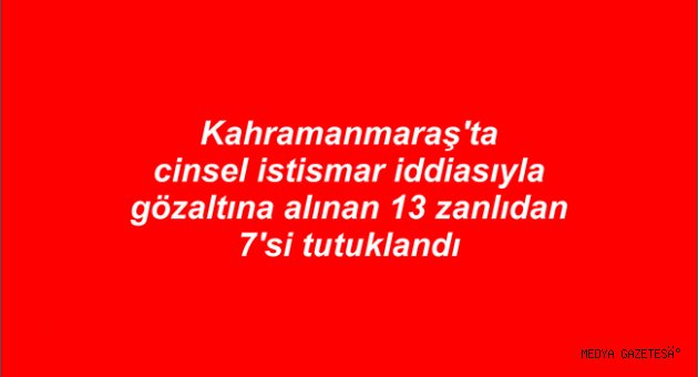 Kahramanmaraş'ta bir kız çocuğuna cinsel istismarda bulunduğu iddiasıyla gözaltına alınan 13 şüpheliden 7'si tutuklandı.