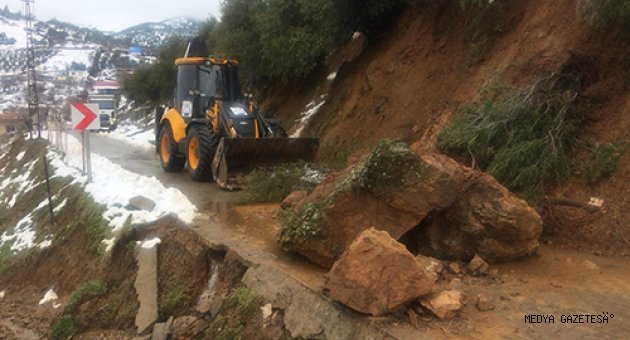 Türkoğlu ilçesinde dağdan kopan kaya parçalarının düşmesi sonucu kapanan Yoğunoluk Yaylası yolu, ekiplerin çalışması sonucu açıldı.