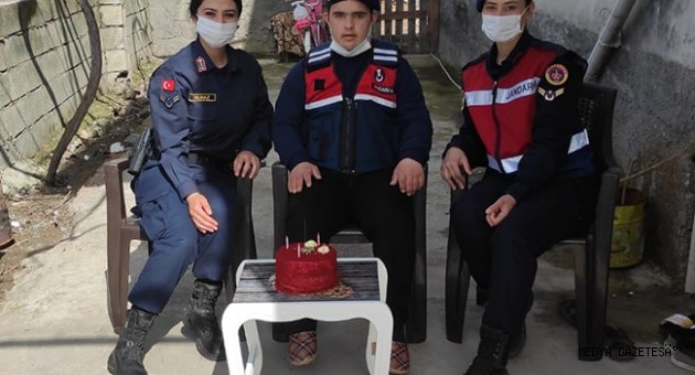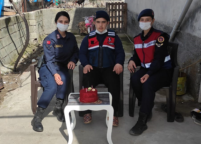 İl Jandarma Komutanlığı ekipleri, Türkoğlu ilçesi Şekeroba Mahallesi'nde ikamet eden Ahmet Can Gülep'i ziyaret etti. Ekipler, bir süre sohbet ettikleri Gülep'i jandarma aracına bindirerek ilçede tur attı.Jandarma personeliyle keyifli zaman geçiren Gülep, daha sonra gün dolayısıyla alınan pastanın üzerindeki mumları üfledi.