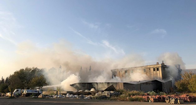 İstasyon Mahallesi Eğlenceler Caddesi'ndeki fabrikada henüz belirlenemeyen nedenle alevler yükseldi.