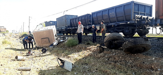 Kahramanmaraş'ın Türkoğlu ilçesinde, hemzemin geçitte trenin çarptığı kamyonun sürücüsü hayatını kaybetti.