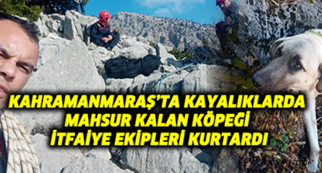 Kahramanmaraş'ta kayalıklarda mahsur kalan köpek, itfaiye ekiplerince kurtarıldı.