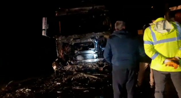 Yangın nedeniyle tır kullanılamaz hale geldi.