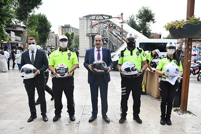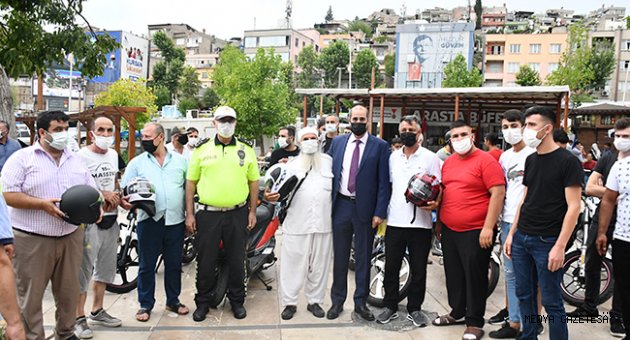 İl Emniyet Müdürlüğü tarafından kask kullanımına dikkat çekilmesi amacıyla Demokrasi Meydanı'nda etkinlik düzenlendi.İl Emniyet Müdürü Salim Cebeloğlu'nun da katıldığı programda, 250 motosiklet sürücüsüne kask hediye edildi. Sürücülere bilgilendirici broşür dağıtan Cebeloğlu, güvenli sürüş için kask takmaları uyarısında bulundu.Cebeloğlu, gazetecilere, salgın dönemiyle birlikte motosiklet kullanımının yaygınlaştığını söyledi.