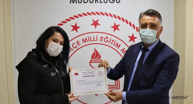 Kahramanmaraş'ta evinin bir bölümünü sınıfa çeviren ve öğrencilerine dijital içerik sağlamak amacıyla sosyal medya üzerinden "Mutiş Teacher" isimli kanal açan İngilizce öğretmeni Muhterem Sida, ödüllendirildi.