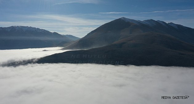 Kahramanmaraş'ın Elbistan ilçesinde soğuk havanın etkisiyle yüksek kesimlerde etkisini gösteren sis, güzel görüntüler ortaya çıkardı.