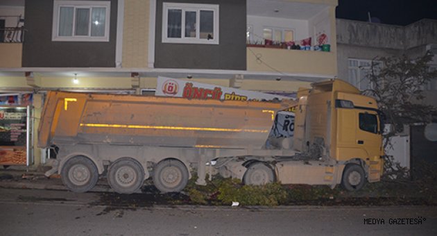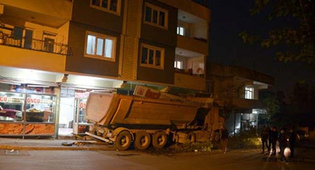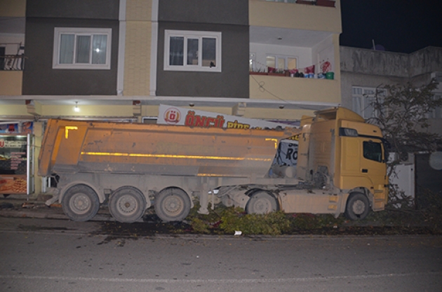 Merkez Dulkadiroğlu ilçesi Şeyh Şamil Mahallesi'nde iddiaya göre park halindeki 46 ACY 004 plakalı tır henüz bilinmeyen nedenle hareket etti ve bir binanın zemin katındaki iş yerlerine çarparak durabildi.Kaza sonucu iş yerlerinde ve binada hasar oluştu. Tır, olay yerine çağrılan vinçle bulunduğu yerden kaldırıldı.İş yeri sahibi Sefa Öncüokur, iş yerini kapattıktan bir süre sonra kaza haberini alarak geri geldiğini belirtti.Öncüokur, sürücünün el frenini çekmeyi unutarak araçtan indiğini tahmin ettiğini aktararak, "Hasarımız var ama çok şükür sağlığımız yerinde. Komşular telefonla haber ettiler, o şekilde buraya geldim." diye konuştu.Mahalle sakinlerinden Tamer Akburak da evde televizyon seyrettiği sırada büyük bir gürültü duyarak dışarı çıktığını belirterek, "Dışarıya çıktığımda tırın burada olduğunu gördüm. Polis ekiplerini aradım daha sonra mal sahiplerini aradık." ifadesini kullandı.