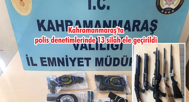 Kahramanmaraş'ta, polis ekiplerinin silah kullanımını önlemeye yönelik çalışmaları kapsamında bir haftada 13 silah ele geçirildi, 13 kişiye adli ve idari işlem yapıldı.
