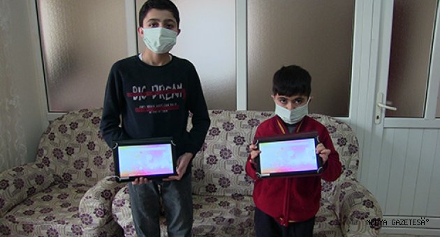Kahramanmaraş'ın Elbistan ilçesinde "155 Polis İmdat" hattını arayıp tableti olmadığı için uzaktan eğitimde derslere katılamadığını belirten lise ve ilkokul öğrencisi Ali ve Berat Özen kardeşlere Toplum Destekli Polislik Büro Amirliği ekiplerince iki tablet hediye edildi.