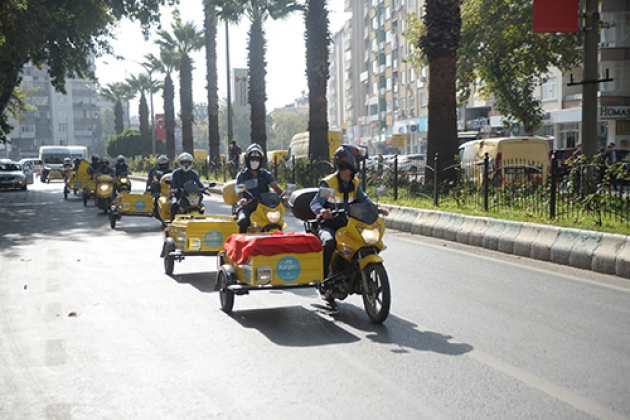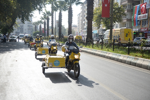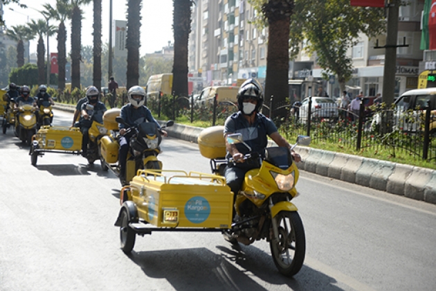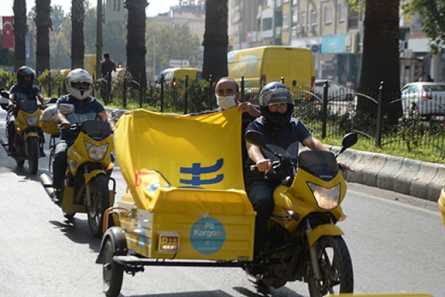 PTT Kahramanmaraş Başmüdürlüğü önünde toplanan kurum araçları, kent merkezinde tur atarak Trabzon Caddesi boyunca konvoy yaptı.