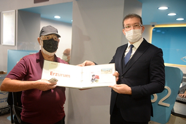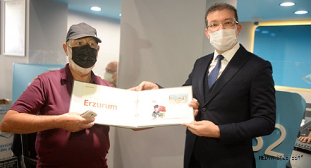 Konvoyun ardından, PTT Dulkadiroğlu Şubesinde gişede yanan 180'inci numarada işlem gören 78 yaşındaki Reşat İşbilmez'e, PTT Başmüdürü Harun Oğuzhanoğlu tarafından milli mücadele yıllarından bugüne pul ve zarfların bulunduğu hatıra pul seti hediye edildi.