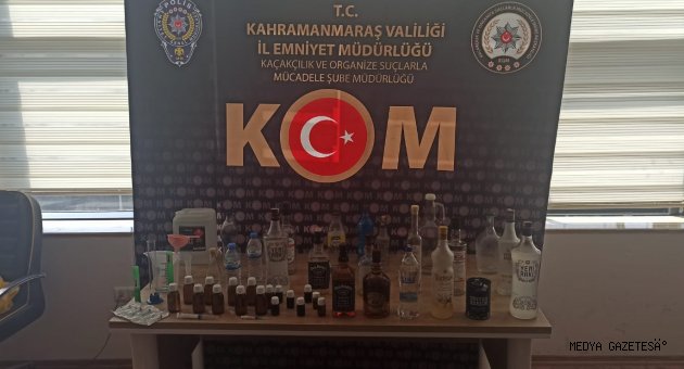 Kahramanmaraş'nın Onikişubat ilçesinde bir eve düzenlenen operasyonda 5 litre etil alkol ile içki yapımında kullanılan çok sayıda madde ele geçirdi.