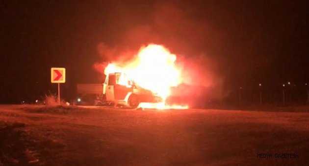 Kahramanmaraş'ın Afşin ilçesinde seyir halindeyken alev alan kamyonet itfaiye ekiplerinin müdahalesiyle söndürüldü.