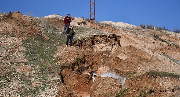 3. Kahramanmaraş'ta su borusunun patlaması sonucu kayan toprak yolda ulaşımı aksattı
