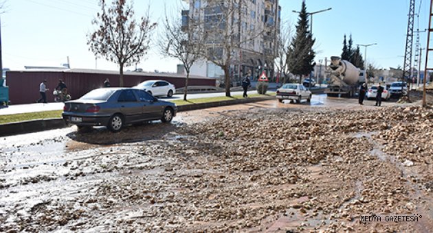 Kahramanmaraş'ın Dulkadiroğlu ilçesinde su borusunun patlaması sonucu kayan toprak, ulaşımda aksamaya neden oldu.